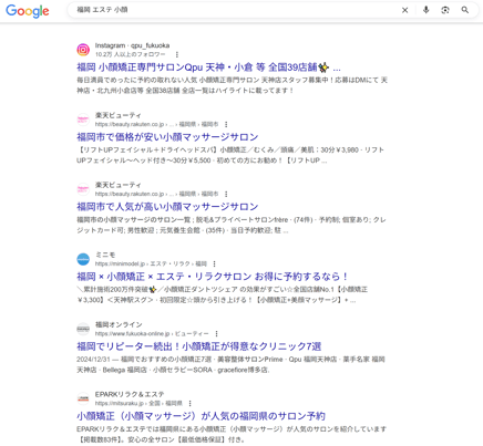 たとえば「福岡 エステ 小顔」などと検索されたときに、自サロンのページが上の方に出てくると、予約される可能性が高まります。これは「自然検索(web広告ではないワード検索)」からの集客ができるということです。